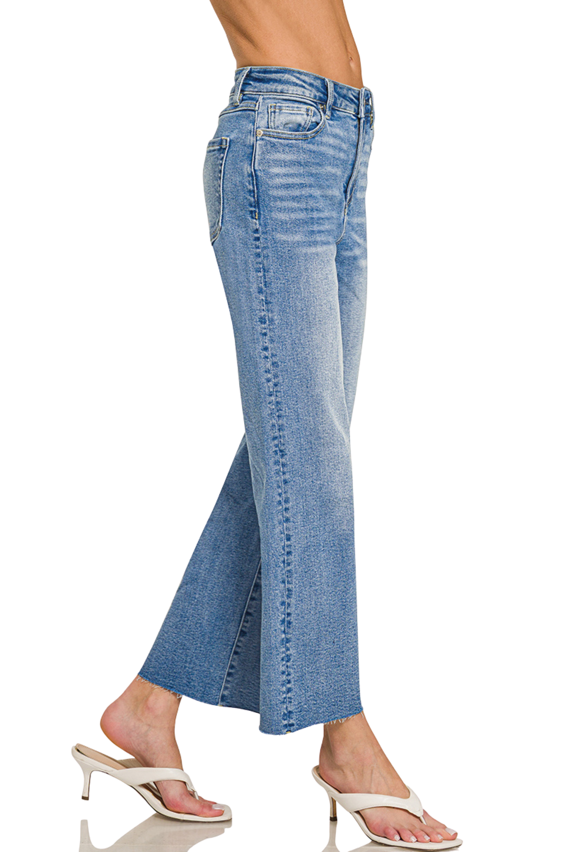 Cropped Wide Leg Raw Edge Medium Wash Jeans