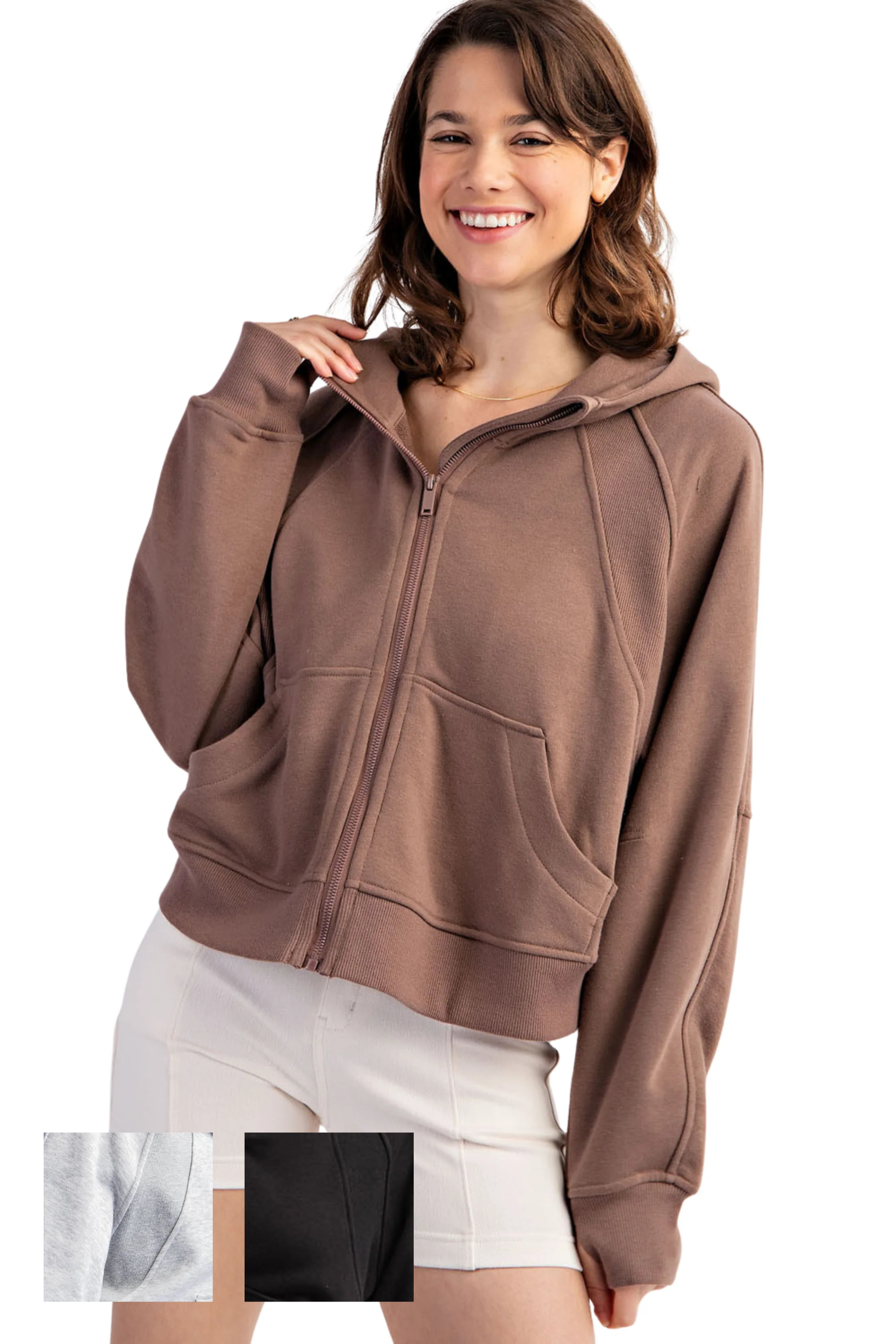 French Terry Full Zip Hoodie with Kangaroo Pockets