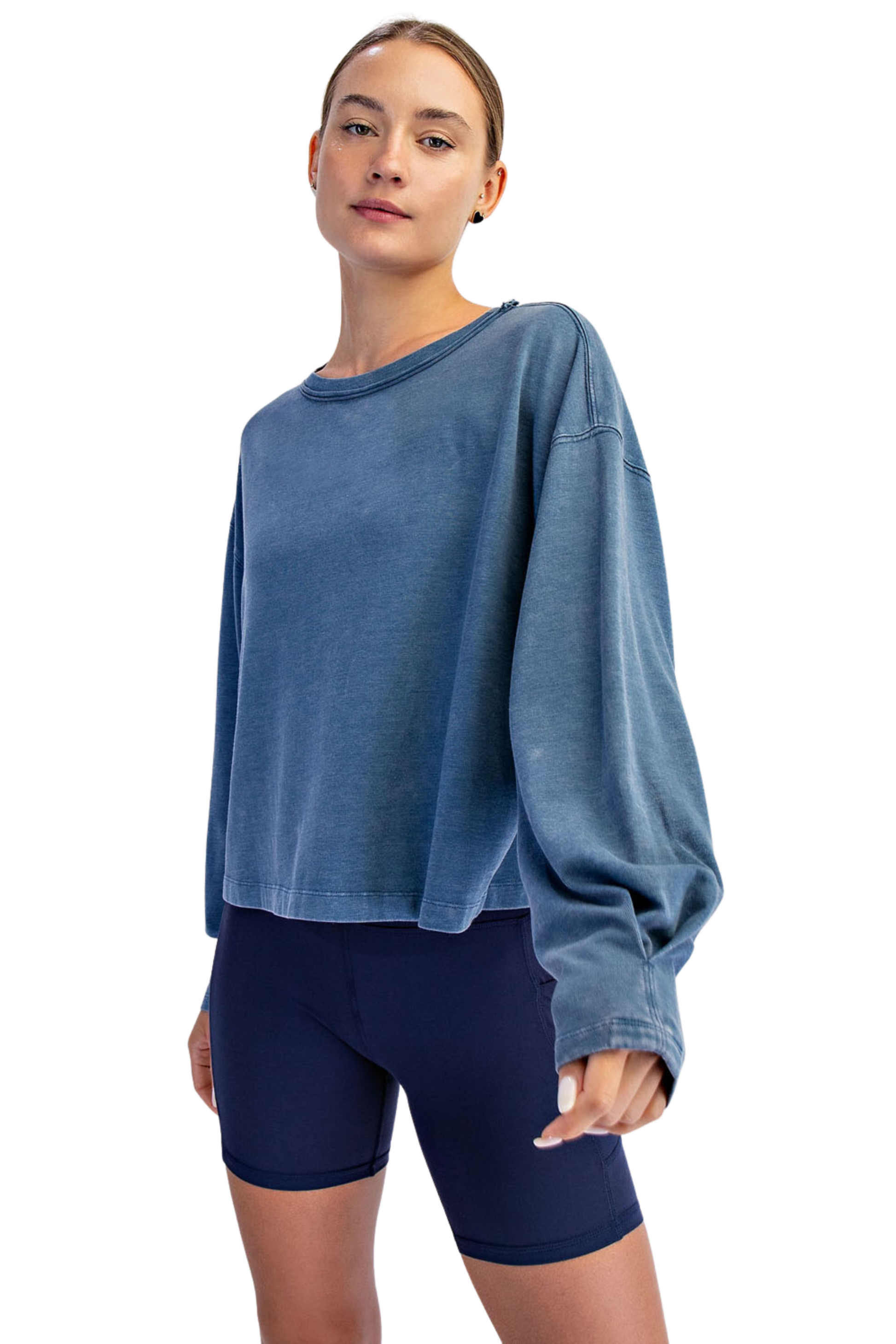 Mineral Washed Relaxed Long Sleeve Crop Top