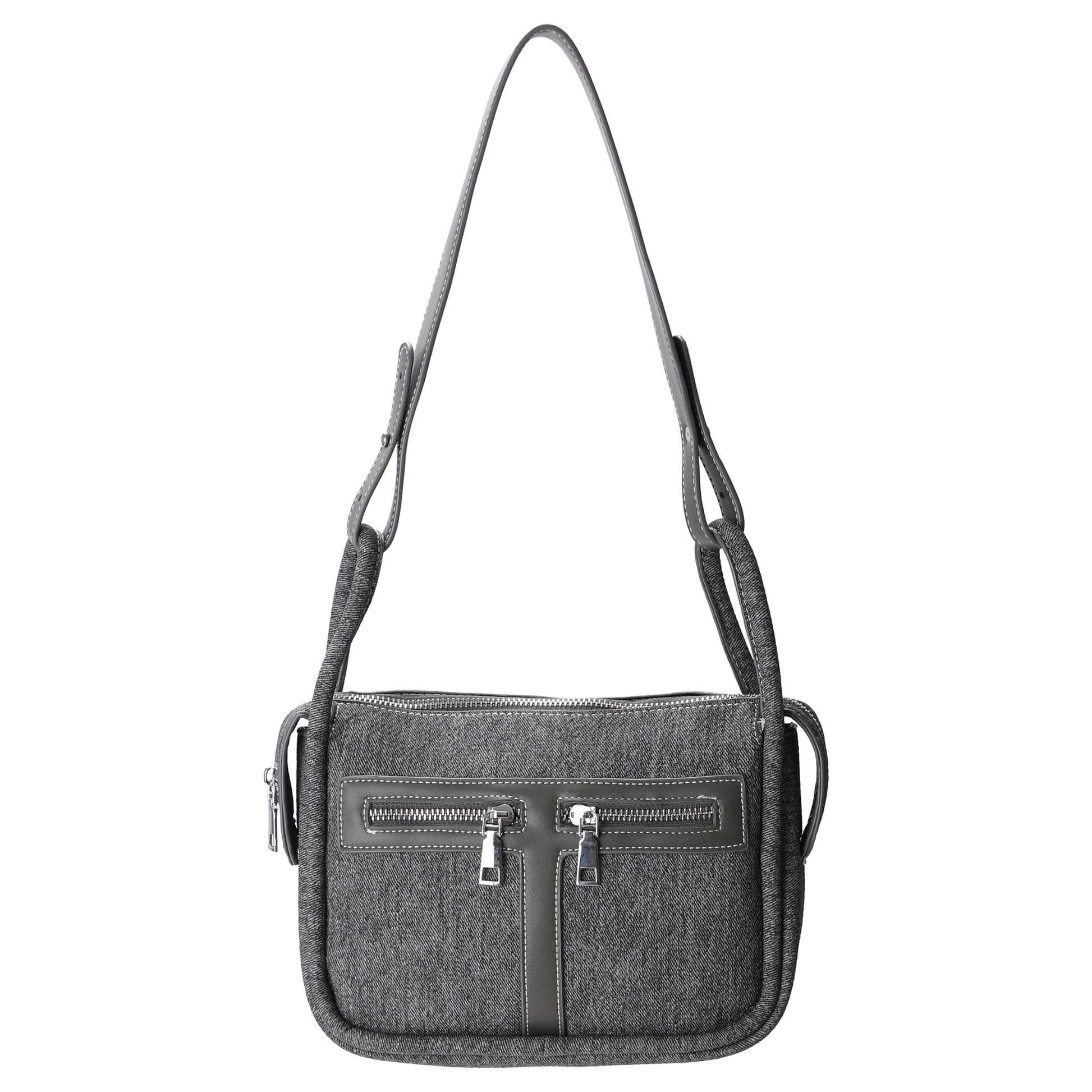 Soft Denim Double Front Zipper Bag with Handles and Shoulder Strap