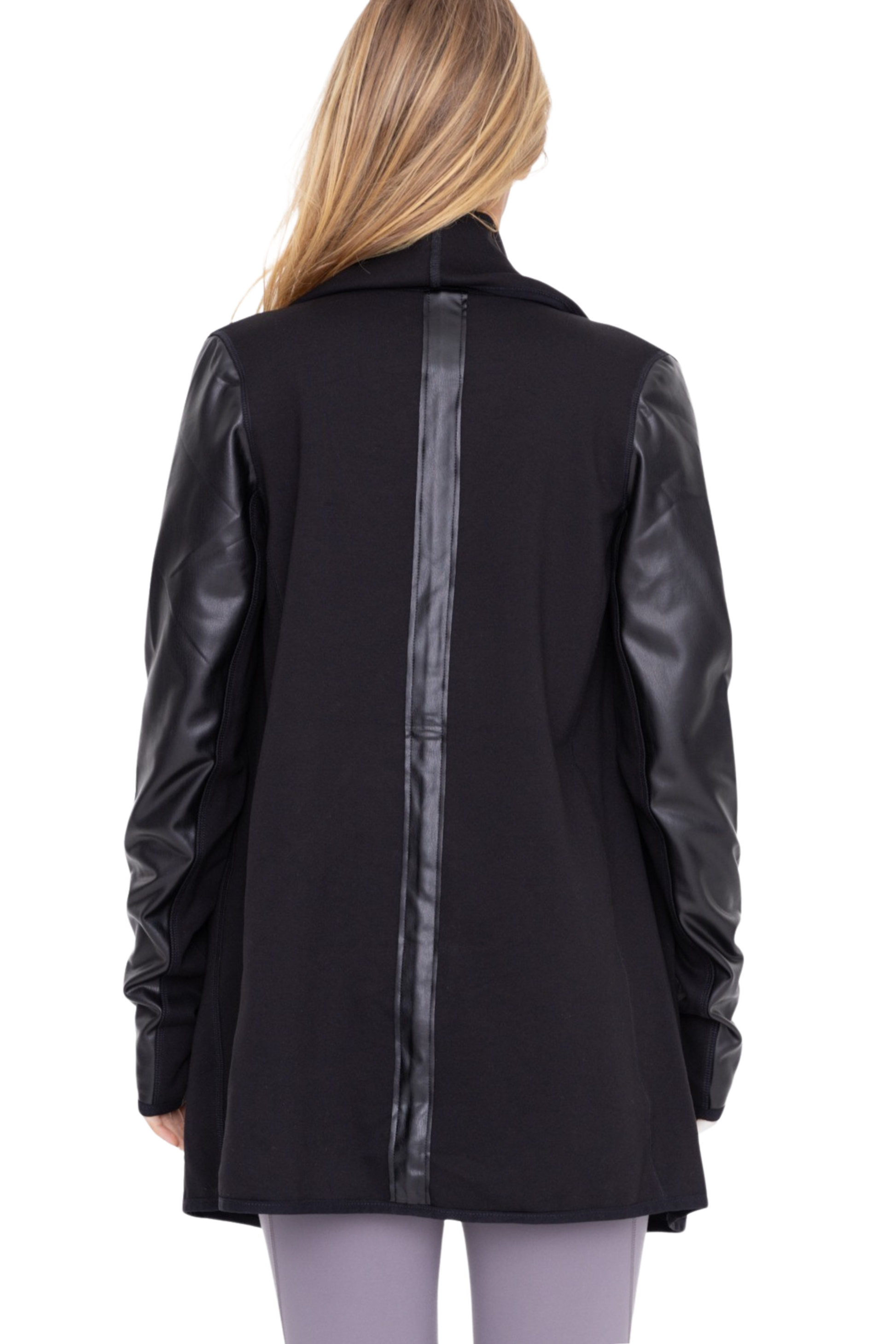 Vegan Leather Detail Waterfall Open Cardigan